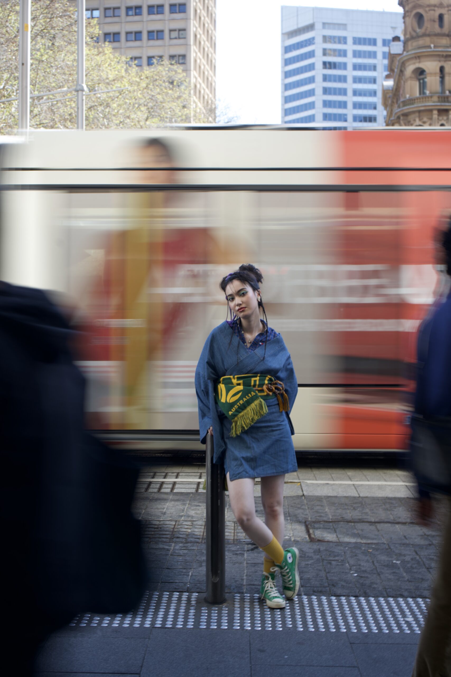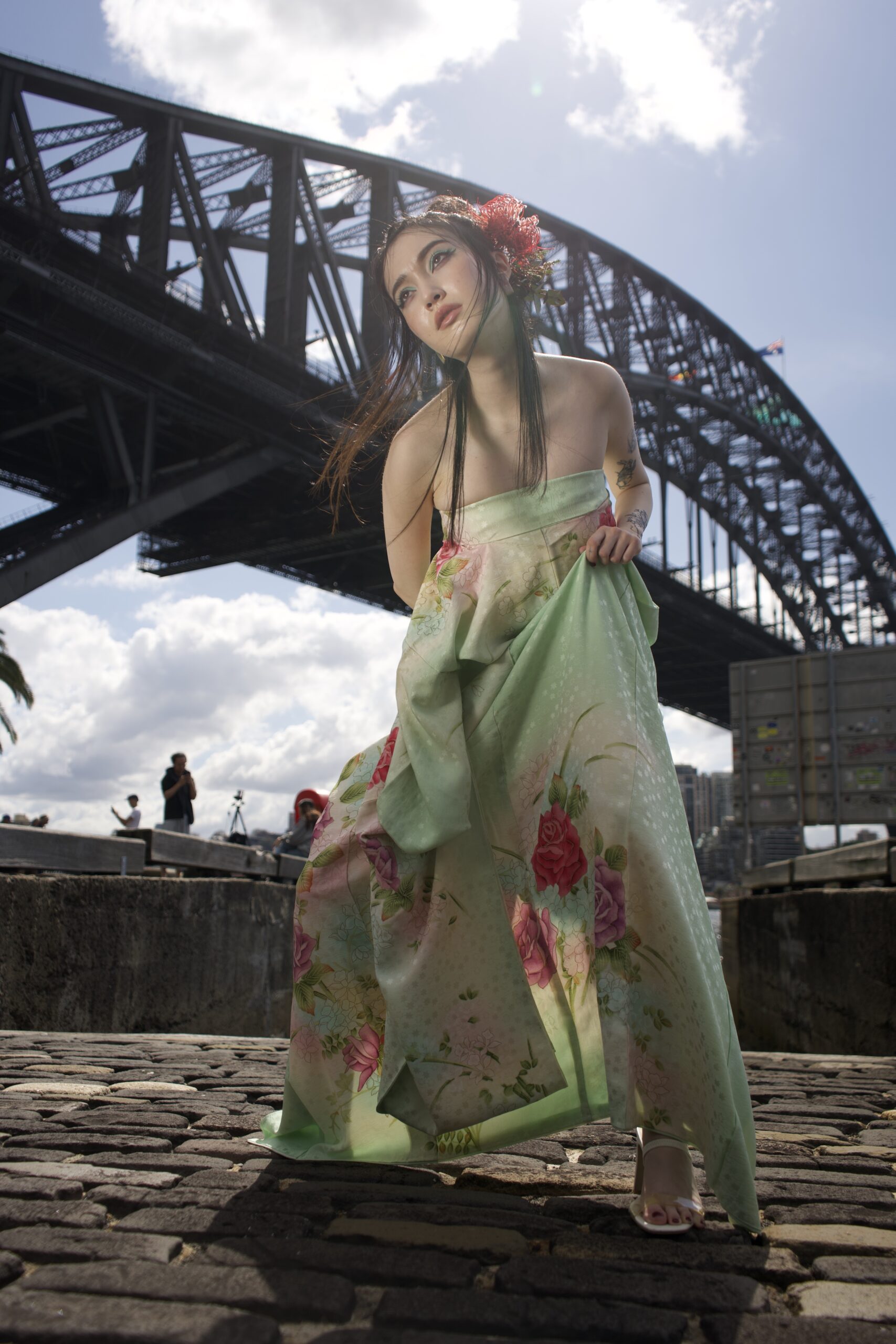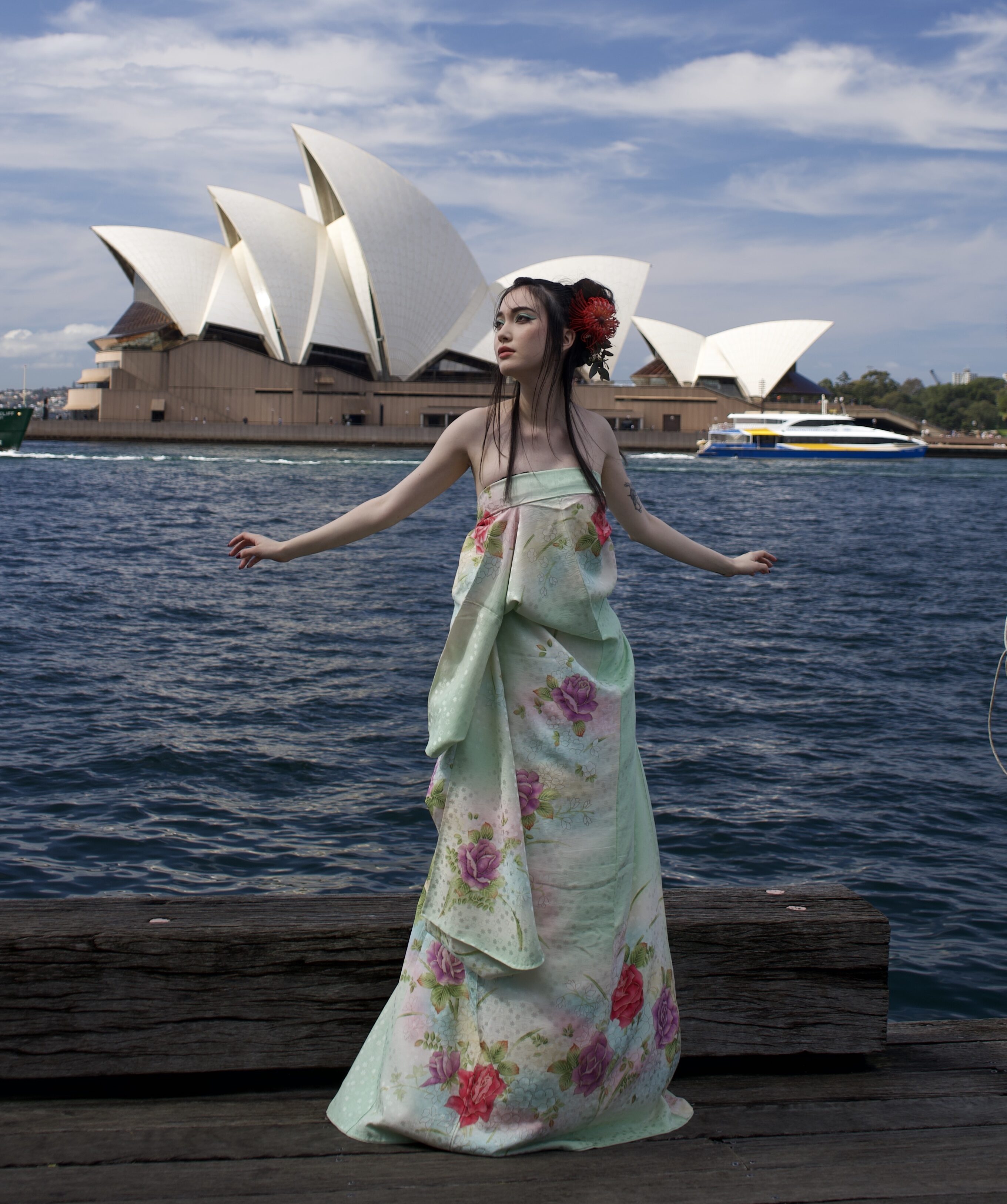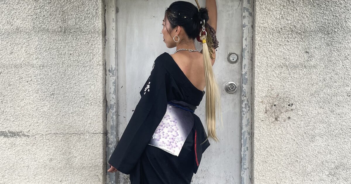 The kimono is not cut or modified in any way, using advanced dressing techniques.